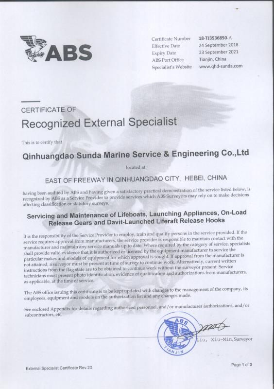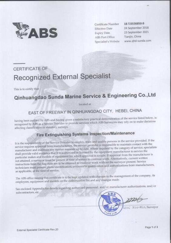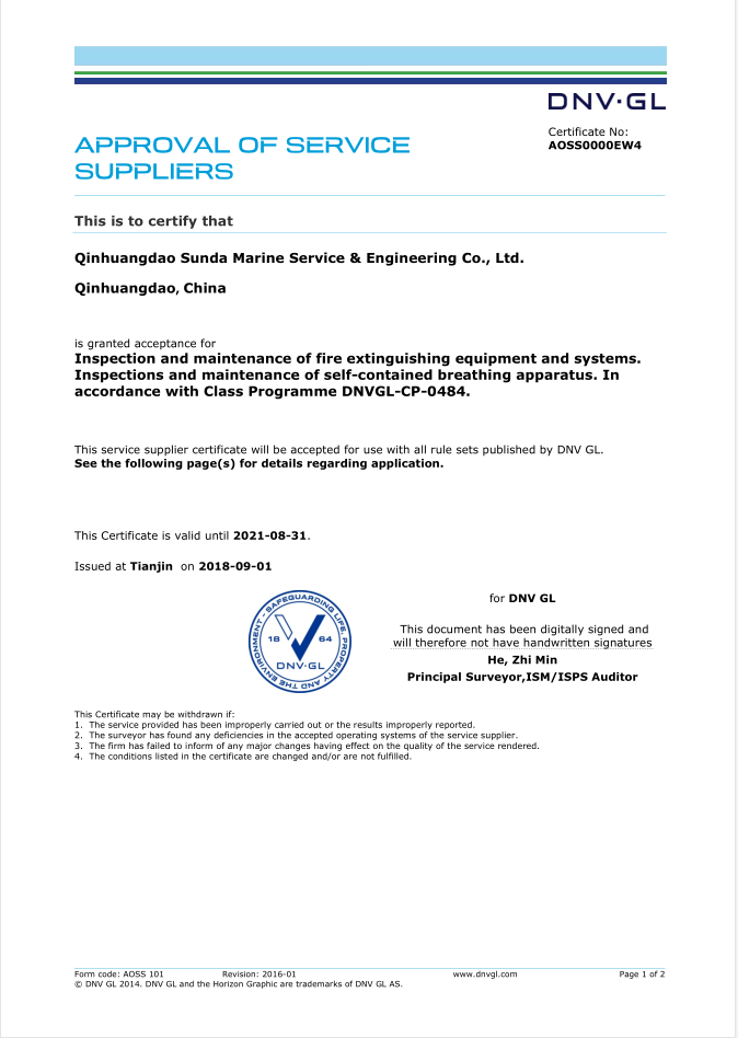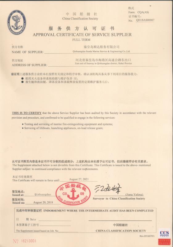 秦皇島順達(dá)船務(wù)有限公司位于美麗的海濱城市、中國北方著名的能源輸出大港--秦皇島。公司從事于船舶修理、物料供應(yīng)、水下檢測、船體測厚、消防救生設(shè)備及救生艇檢驗、電氣自動化修理等服務(wù)。 公司自1997年成立至今,先后為國內(nèi)外船東修理、檢驗各類船舶萬余艘,積累了豐富的施工經(jīng)驗。公司現(xiàn)有場地100余畝,員工30余人,以及工程用車若干臺。我們公司一直本著嚴(yán)以律己、真誠待人、精益求精、信譽(yù)至上的經(jīng)營理念,以優(yōu)質(zhì)的服務(wù)、專業(yè)的施工、合理的收費,得到了國內(nèi)外船東的廣泛認(rèn)可,贏得了良好的口碑和信譽(yù)。 公司已取得了中國船級社(CCS)、美國船級社(ABS)、日本船級社(NK)、德國船級社(DNV GL)等各個船級社的消防救生和救生艇檢驗資質(zhì), ...